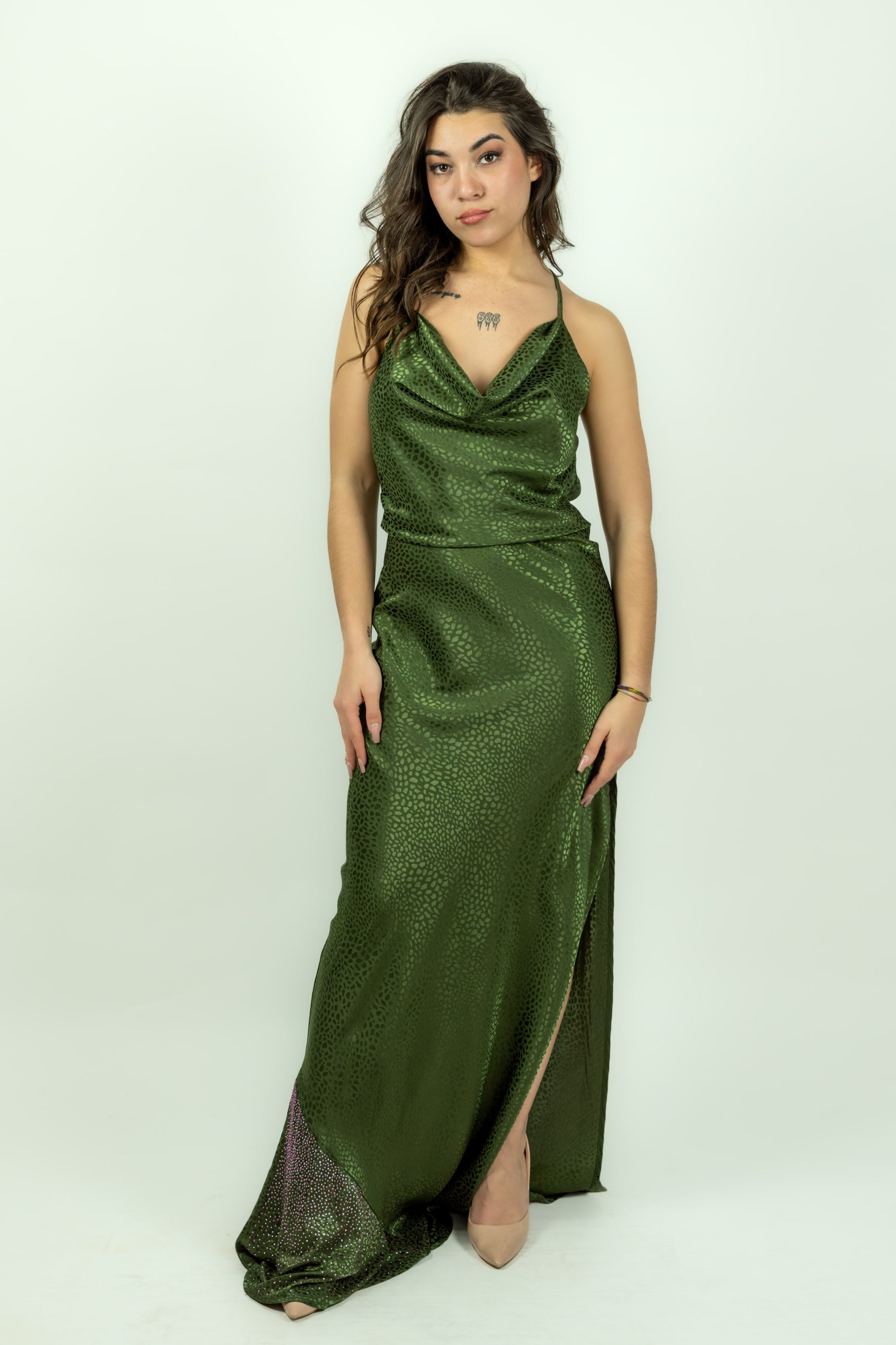 Abito verde dal design sofisticato e senza tempo. Tagliato con precisione per esaltare le curve, combina eleganza classica e comfort contemporaneo. Perfetto per cene, eventi speciali e occasioni formali, si distingue per i dettagli curati e la qualità costruttiva superiore. Un investimento nel guardaroba che garantisce versatilità e presenza, indossabile in molteplici contesti con sicurezza e stile.Share